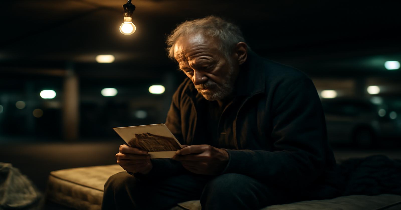 Spät in der Nacht, wenn die letzte Autotür fällt und die Rampe leer ist, wird das Parkhaus still. Nur irgendwo plätschert ein undichtes Rohr, und der Wind drückt durch den offenen Eingang. Karl rollt seine Decke aus, legt die Jacke zusammen, legt den Kopf auf eine zusammengefaltete Tasche. Neben ihm, an der Wand, steht das Bild seiner Tochter. Er richtet es aus, damit es nicht schief steht, obwohl es niemand außer ihm sehen wird.