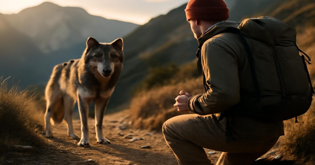 Der Wolf stand einfach da. Still, reglos, als hätte ihn jemand aus einem Naturmagazin ausgeschnitten und mitten auf den schmalen